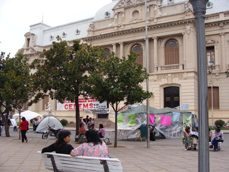 Inicia su tercer semana de Paro docente de Nivel Medio y Superior, el gobierno no mejora la oferta realizada, que consiste en pasar la suma de $100 al básico y dejar la una suma de $150 en negro, de los $250 que se vienen cobrando desde el 2008, teniendo encuentra que se tiene el básico mas bajo de todo el país, que es de $591, fuimos reprimidos brutalmente en dos oportunidades por la policía provincial, por ir a la casa de gobierno a solicitar una audiencia y arrojar tizas, por no ser atendidos por ningún funcionario, hubo mas de 15 compañeros heridos con balas de goma, otros golpeados, otros compañeros con las ojos irritados por gas pimienta y muchos con gases lacrimógenos y vomitivos, con todos estas acciones por parte del gobierno se instalo la CARPA DEL BICENTENARIO por la dignidad docente frente la casa de gobierno, el 15/3 se permanece en la legislatura provincial.
